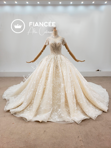 Marca: FIANCEE NOVIASImágenes reales: SíColección: LUXURYSujetador incorporado: PersonalizadoCorte: PRINCESATalla: SDecoración: Cristales en todo el vestidoDecoración: Pedrería brillante / Flores 3D en mangasMangas: Mangas caídas tipo globo con flores aplicadasEscote: Corazón profundo con estructuraCuello: DescubiertoCola: Larga...