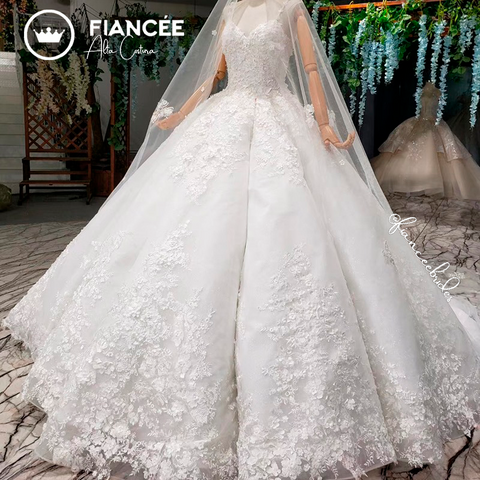 Marca: FIANCEE Escote: Redondo Largo del vestido: Hasta el suelo Imágenes reales: Sí Para mujeres embarazadas: No Cola: Barrida / Cepillo Largo de manga (cm): Completo Diseño de espalda: Cremallera Tela del vestido de novia:...