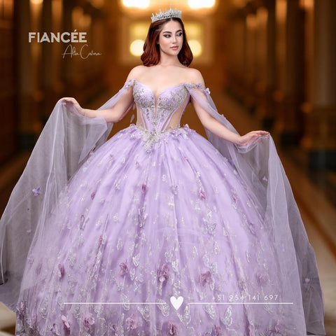 Marca: FIANCEE QUINCEAÑERAS Escote: Corazón Cola: Con Cola Talla: SColor: LILACCapa: DesmontableSujetador: Personalizado Decoración: Apliques Decoración: Cristales Personalizar: SI / Puede hacerse a medida IMPORTANTE: Este vestido es elaborado a pedido, podemos confeccionar a medida...