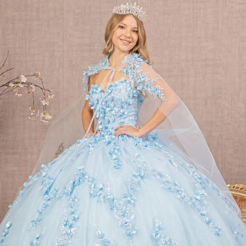 Marca: FIANCEE QUINCEAÑERAS Escote: Corazón Cola: Con Cola Accesorio: Capa Sujetador: Personalizado Decoración: Apliques Decoración: Cristales Personalizar: SI / Puede hacerse a medida COLOR TALLA BABY BLUE S, M LILAC M IMPORTANTE: Este vestido es elaborado a...