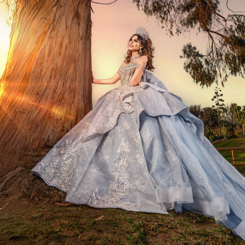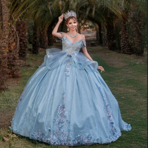 Marca: FIANCEE QUINCEAÑERA Imágenes reales: Sí Escote: Corazón Cola: Incluye falda CON COLA GRANDE DESMONTABLE.Talla: S-MColor: Baby BlueSujetador incorporado: Personalizado Decoración: Apliques, Cristales Accesorios: Mangas en forma nube, ambas desmontables; collar lleno de pedreria, moño trasero grandePersonalizar: SI / Puede hacerse a medida Personalizar: SÍ /...