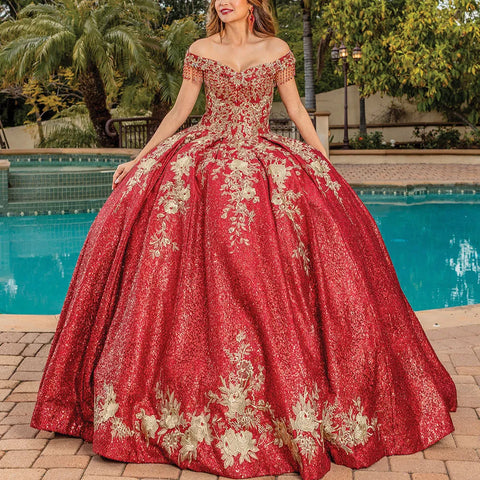 Marca: FIANCEE QUINCEAÑERAS Escote: Corazón Cola: Con Cola Talla: S, MColor: GOLDSujetador: Personalizado Decoración: Apliques Decoración: Cristales Personalizar: SI / Puede hacerse a medida IMPORTANTE: Este vestido es elaborado a pedido, podemos confeccionar a medida...