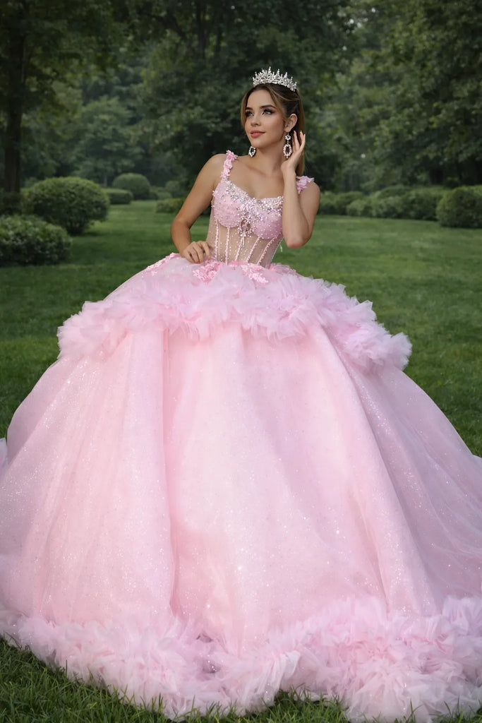 Tela principal: Tul glitter premium de alta densidad con acabado suave y etéreo