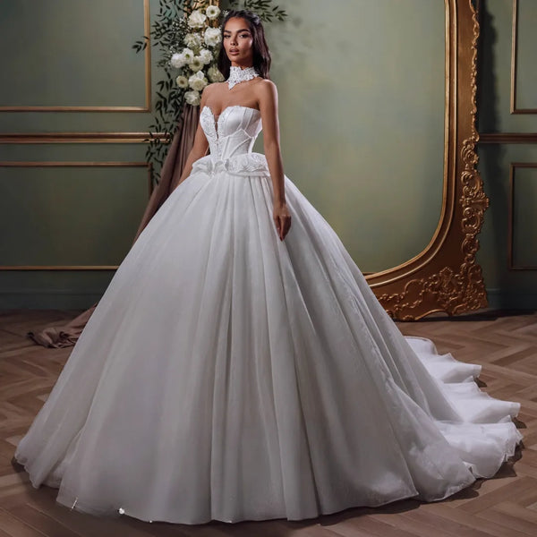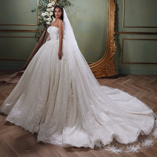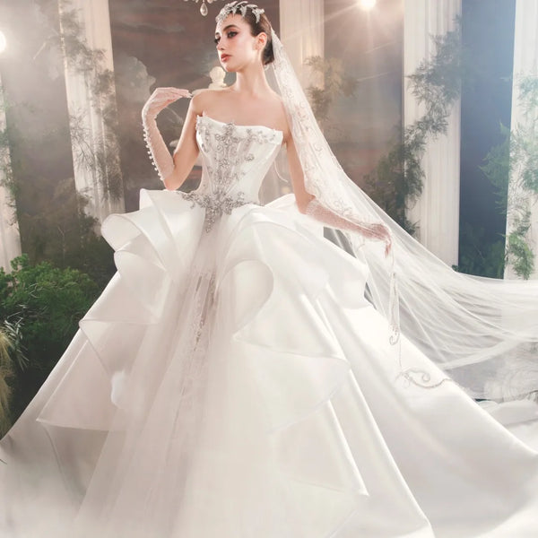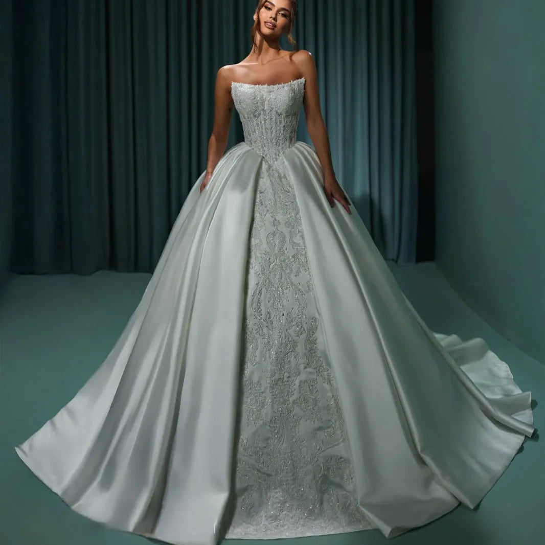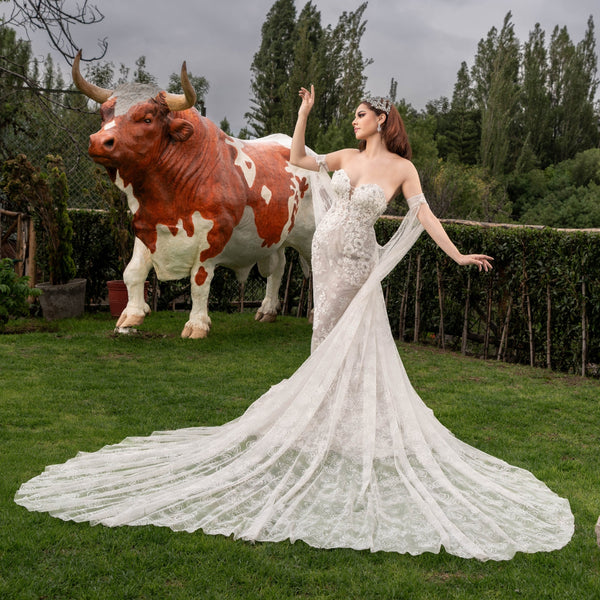 Ideal para novias que buscan glamour, presencia y detalles de alta costura en su gran día.