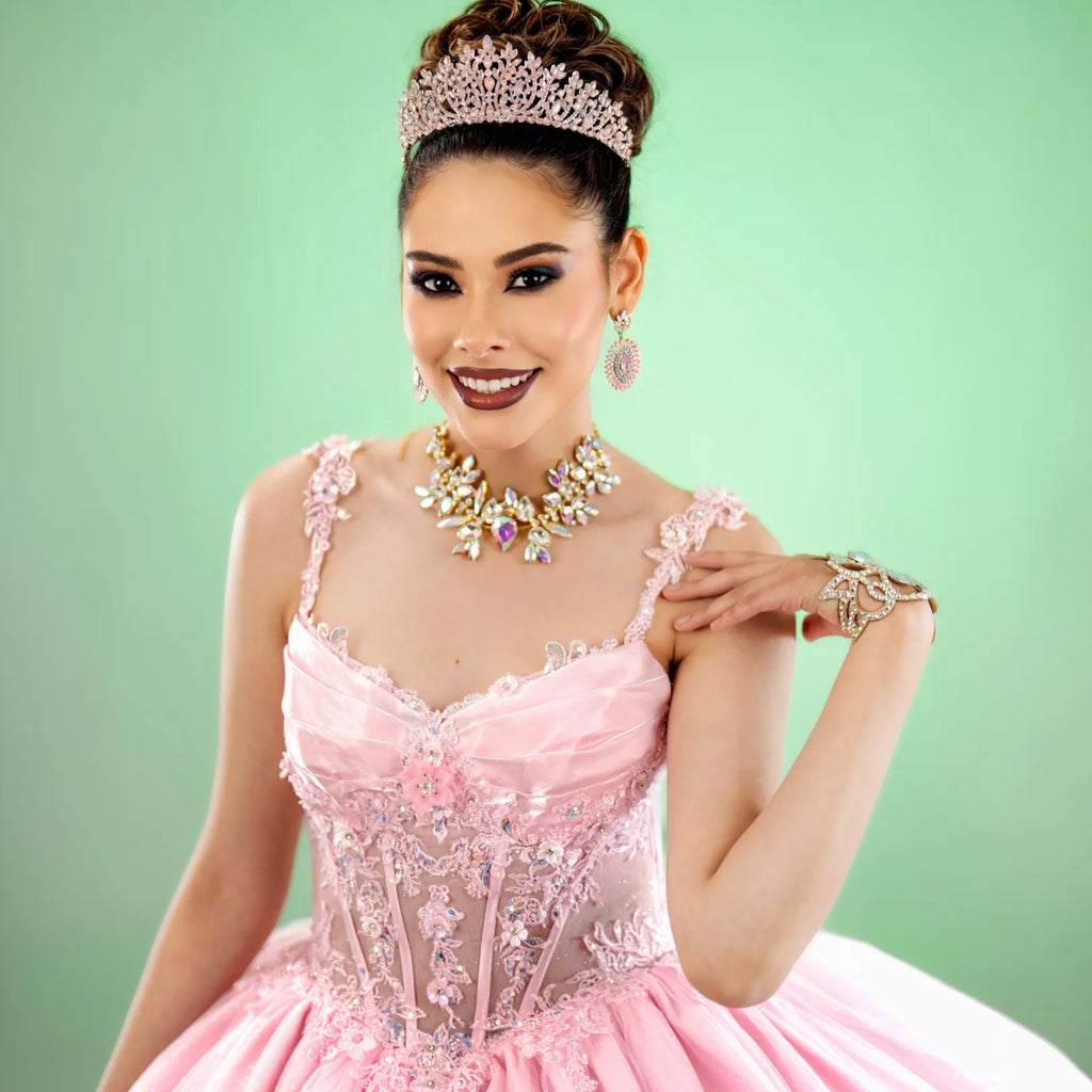 El precio del vestido no incluye accesorios, como Can Can, corona, aretes ni collar.