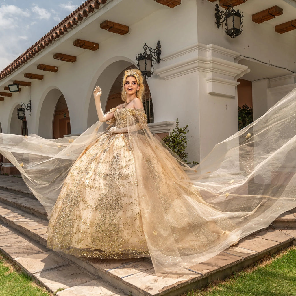 El precio del vestido no incluye accesorios, como Can Can, corona, aretes ni collar.